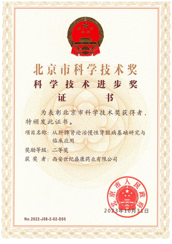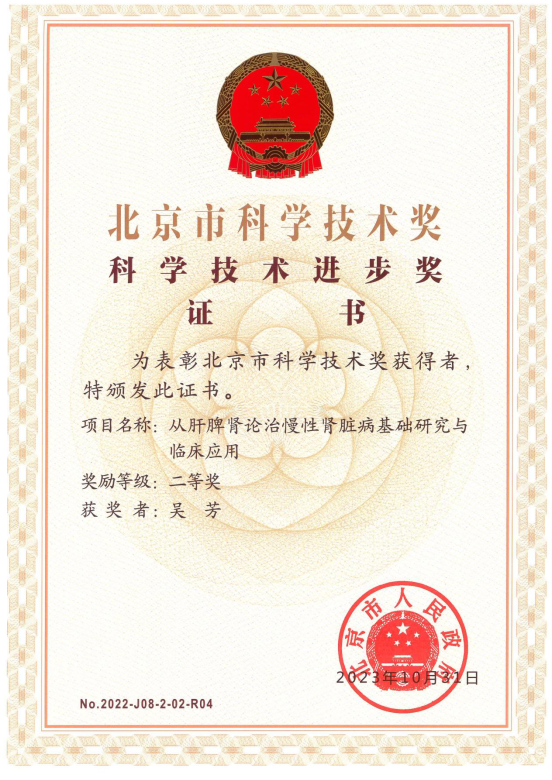 来源: 本站 | 发布时间: 2025-07-28 10:12:53 | 浏览164次2023年11月7日,2022年度北京市科学技术奖正式公布,21位科学家、188项成果获奖。42项成果荣获自然科学奖,包括一等奖10项,二等奖32项;20项成果荣获技术发明奖,包括一等奖5项,二等奖15项;126项成果荣获科学技术进步奖,包括特等奖1项,一等奖29项,二等奖96项。由中日友好医院提名,中日友好医院、浙江中医药大学、西北大学、广东省中医院、西安世纪盛康药业韩国三级片、北京中医医院顺义医院共同完成的“从肝脾肾论治慢性肾脏病基础研究与临床应用”项目获北京市科学技术进步奖二等奖。